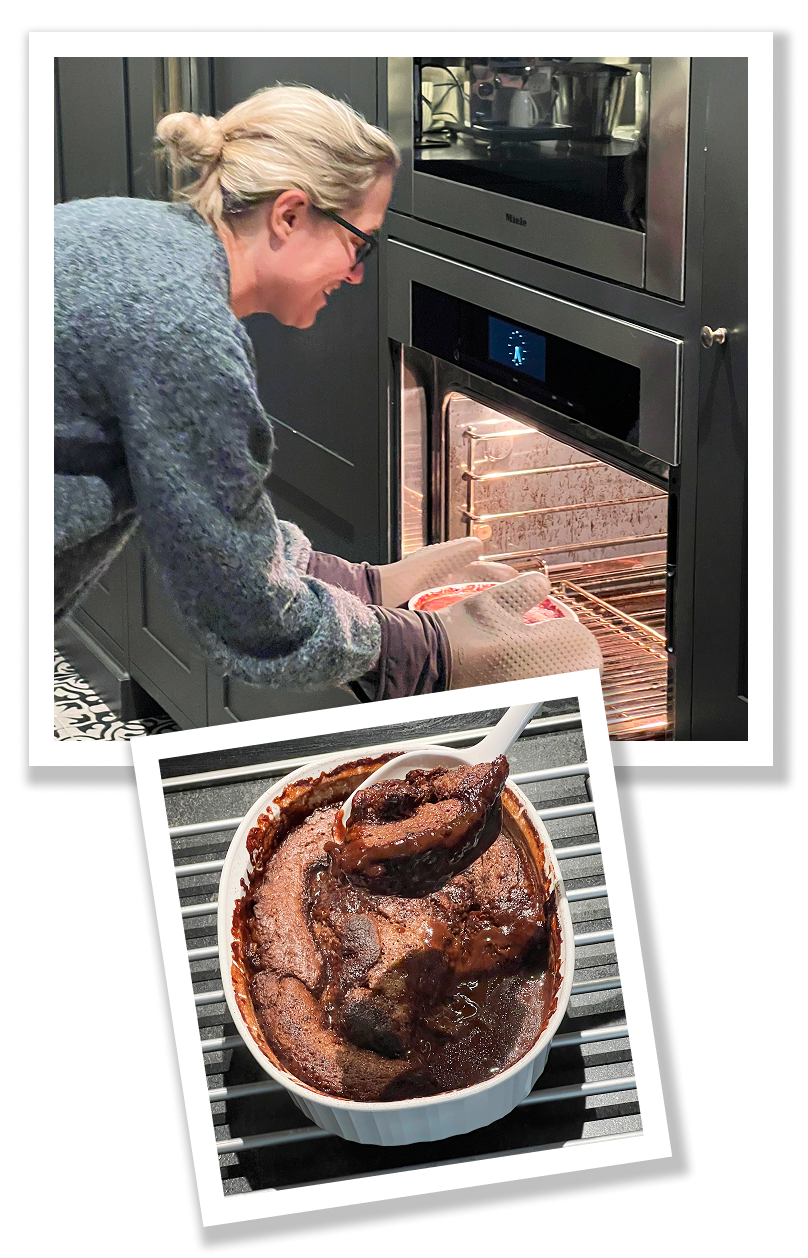 It's one of those magically easy cakes that make their own chocolate sauce — you mix it up, pop it in the oven and somehow, when it's done, there's a crispy, crackly top (not quite a crust) and a warm, fudgey sauce underneath. I hadn't made it since high school, but let me tell you — it took less than 10 minutes to throw together, and it was so worth it. |