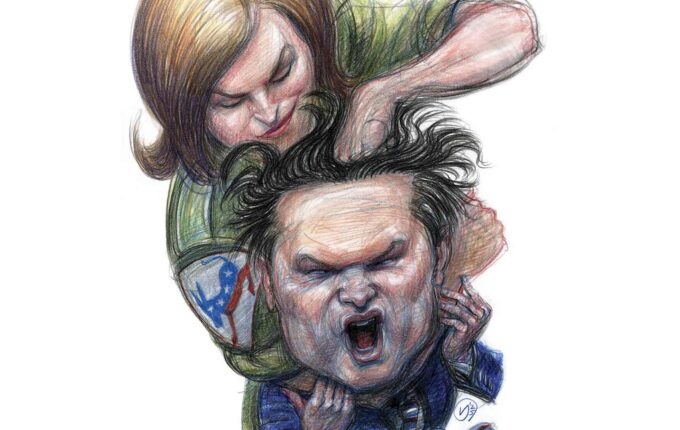 Kid draws a hilarious family portrait, featuring his mother on her period