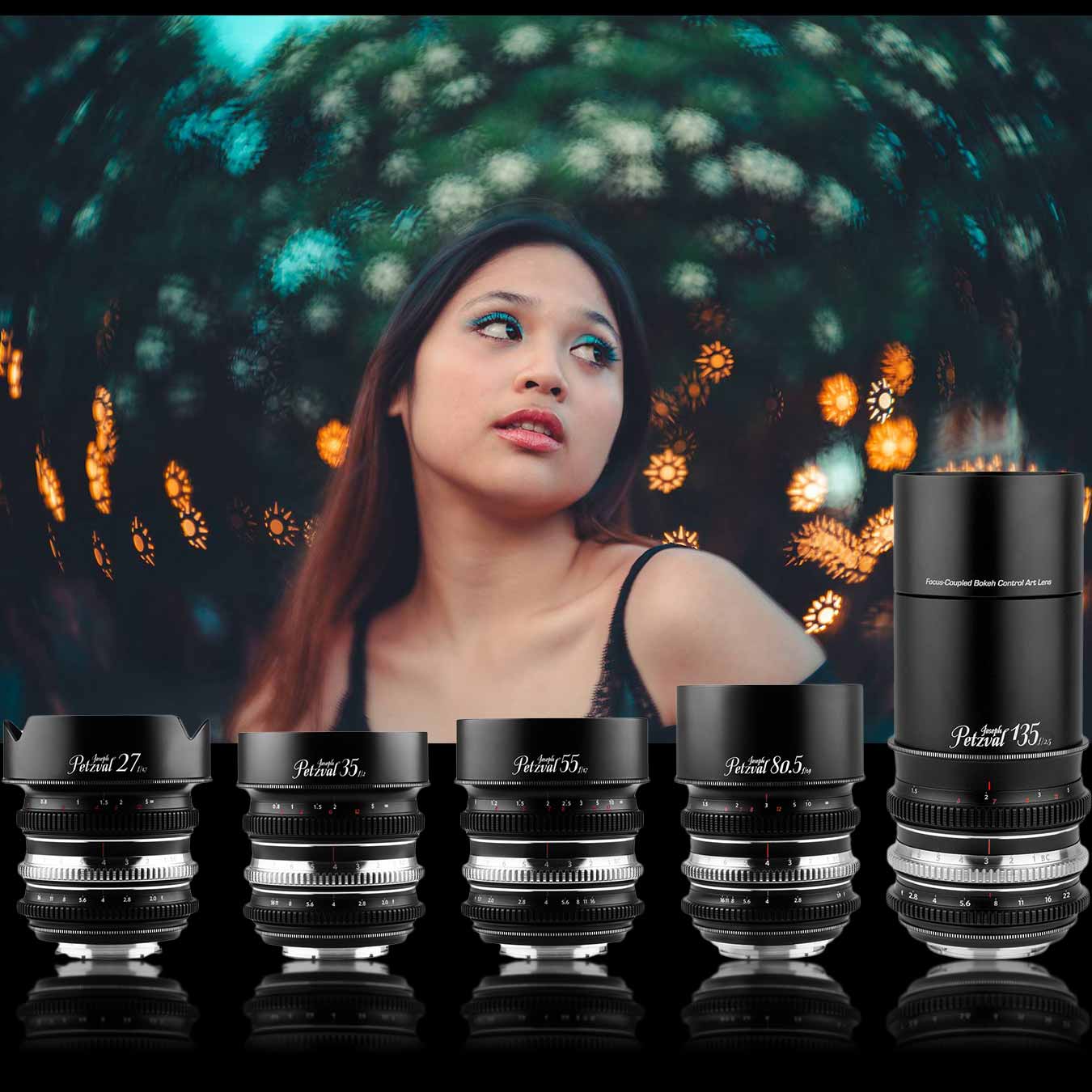 With the launch of the 27 mm and 135 mm focal lengths, the full Joseph Petzval Focus-coupled Bokeh Control Art Lens series is complete. Built based on the original 1840 Petzval lens, with upgraded features for modern mirrorless photographers and videographers, they are available in a full set of five focal lengths – 27 mm, 35 mm, 55 mm, 80.5 mm and 135 mm – each boasting advanced bokeh control and enhanced video performance. Get all five lenses in a bundle, or use your cashback vouchers to complete your series with the 27 mm and 135 mm lenses.