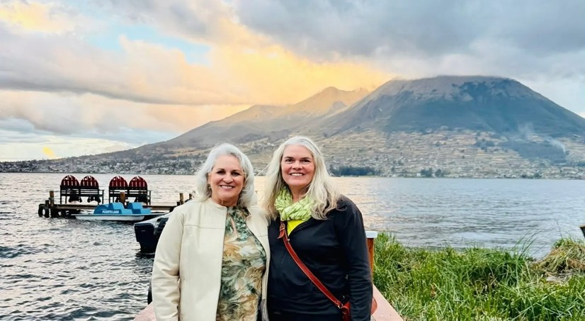 Mona and Leena enjoying Lago San Pablo's beauty in the Ecuadorian highlands. © Vijay Raju |