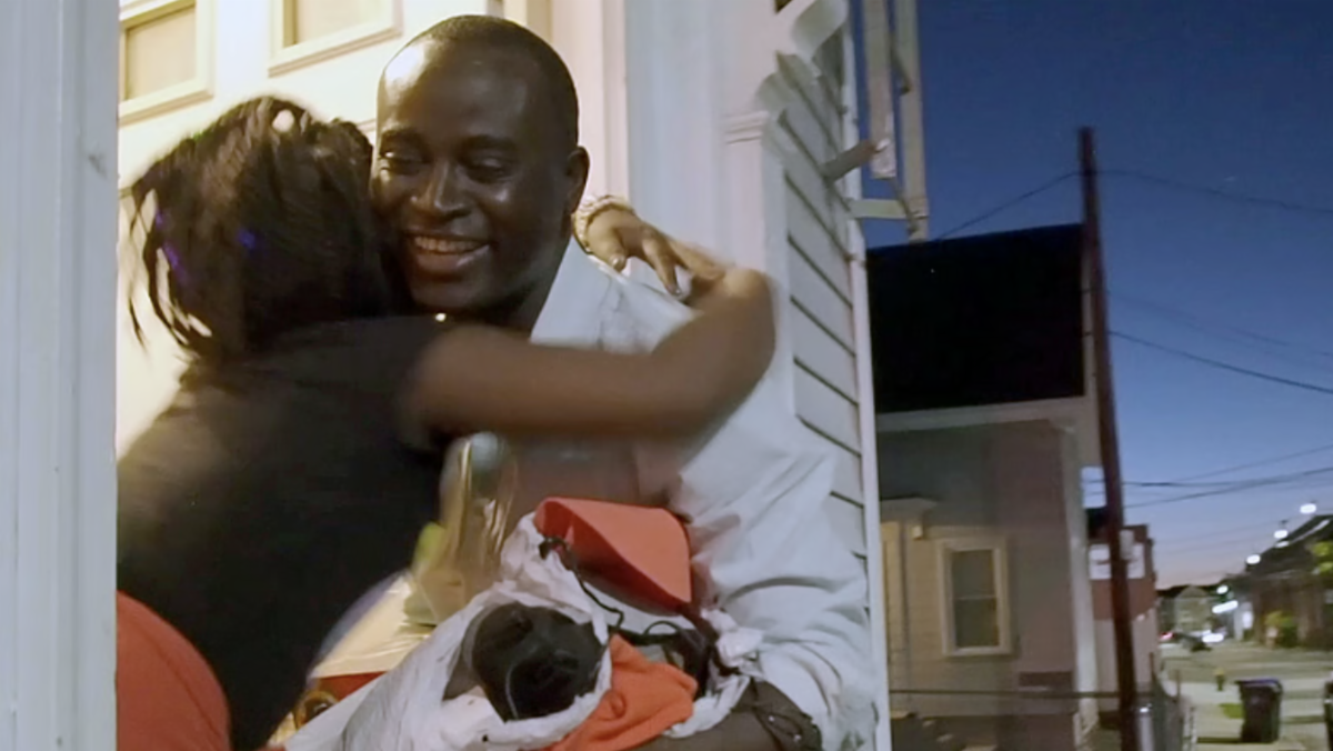 Jolly guy's laugh is so contagious that even chickens had to join in