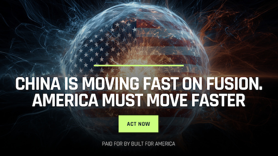 Fusion is America's next major advantage. China is spending billions to control the energy system of the future. America has the talent and momentum, but we need national investment to win. President Trump should push Congress to commit $10B now to commercialize fusion and secure U.S. leadership. Learn more. |