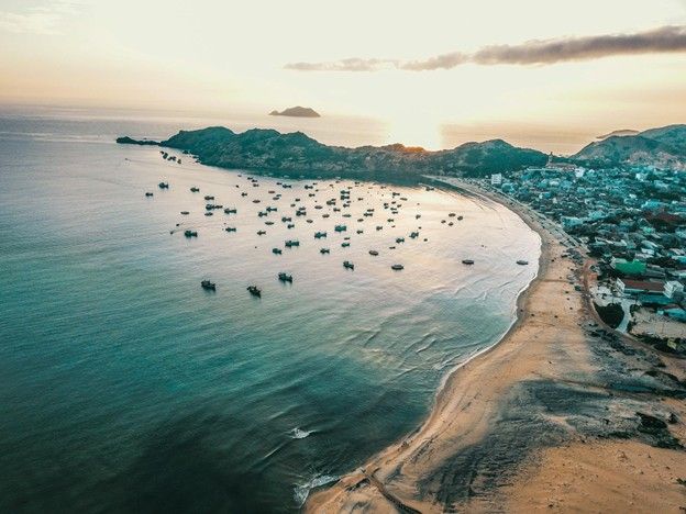 The city itself sits along a clean, peach-colored beach. The sand stops at rocky headlands outside of town in both directions; small, mostly empty beaches lie beyond the southern headlands.